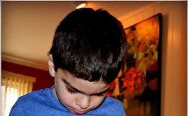 I’m not sure how it happened. Probably the side effect of being a third child, dragged to older siblings’ after school activities with nothing to do. Or, maybe it was eating at restaurants that beg for good behavior when the stars aligned for anything but. Or, the fact that his sister has an iTouch and his brother loves the computer and he was left with zero electronics of his very own. Or, that I just can’t resist those eyes.