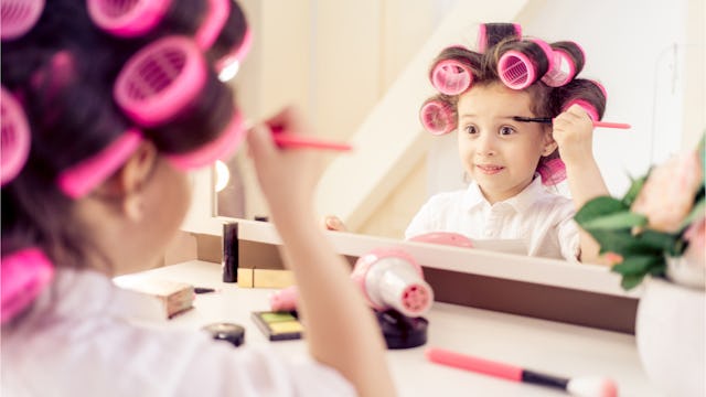 But in this moment in the bathroom, she is still my little girl who looks in the mirror and sees her true self, unmasked by makeup. She is beautiful, she is strong, she is unencumbered by the weight of what society says she should look like, and she enjoys looking at her face, in all of its natural beauty, in the mirror.