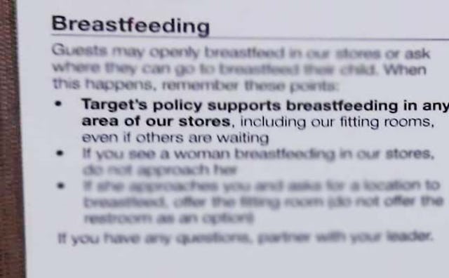 With so many stories of workers publicly shaming breastfeeding mothers or attempting to shove them in a bathroom, you’d think it would be really difficult to educate staff about expectations when dealing with a woman who is publicly feeding her child. It’s not. Target just proved it.