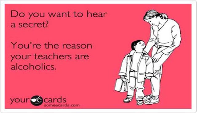 Here’s something that may blow your mind: teachers are human beings who have lives and interests. Some of those interests may have absolutely nothing to do with children – imagine that! They’ve also been known to have a sense of humor and even on some occasions drink alcohol. Shocking, isn’t it? How dare they!