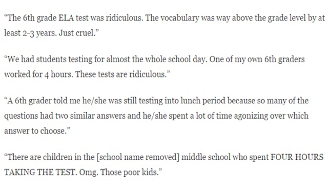 “There are children in the [school name removed] middle school who spent FOUR HOURS TAKING THE TEST. Omg. Those poor kids.”
