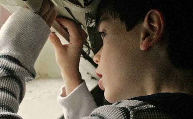 My older son peered through the blinds into our backyard, but made no move to join his friends.