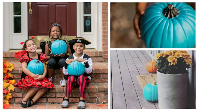 If you want to put out a teal pumpkin, you can paint one yourself or buy one already made. Many stores, including most Target locations and craft stores, sell fake teal pumpkins (which is worth considering so you can save it and use it year after year).