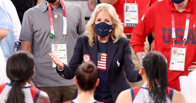 Dr. Jill Biden, first lady and lover of the Olympics, took her first solo international trip on behalf of the U.S.A to cheer on our athletes competing in the Tokyo Olympics Games as President Joe Biden stayed home to, you know, deal with the pandemic. Not only was it sweet to see Jill in her Team USA garb as she supported the athletes, but when she showed up to a swim event, the team cheered for her.