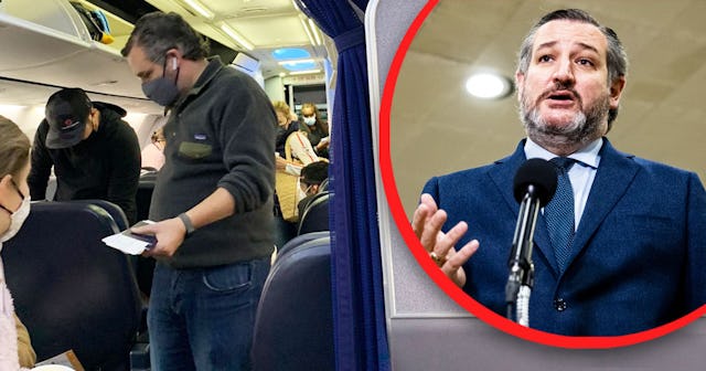 Photos of Cruz began circulating online, showing the disgraced senator in line at a Texas airport, preparing to board a flight to Cancun with his family.