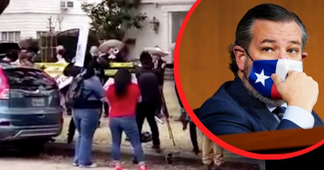 It’s now widely known that Senator Ted Cruz left to vaca in Mexico with his family while his home state of Texas was being pummeled by a winter storm and freezing temps that caused power outages, low water supplies, and at least 55 deaths so far. Cruz made an about-face after massive public scrutiny, and since he didn’t get to enjoy his time away, some friendly Texans decided to send a mariachi band to his house instead.