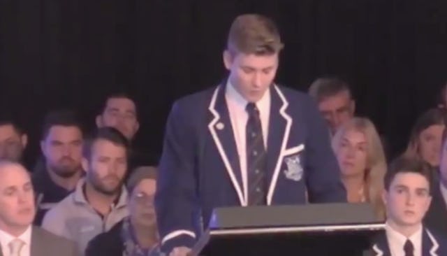 According to SNS News, Finn Stannard gave the speech at St Ignatius’ College, Riverview, earlier this year, as Australia’s news swirled with issues related to gay rights, including whether religious schools should have the right to discriminate against gay staff and students. As he came out — to a packed room of boys wearing matching blue blazers for uniforms — the auditorium burst into applause as students rose to their feet.