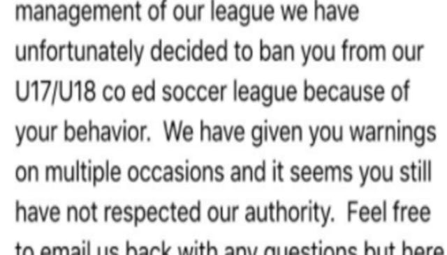 A teen boy is banned from a soccer league for a number of reasons and shared the list detailing his zany antics.
