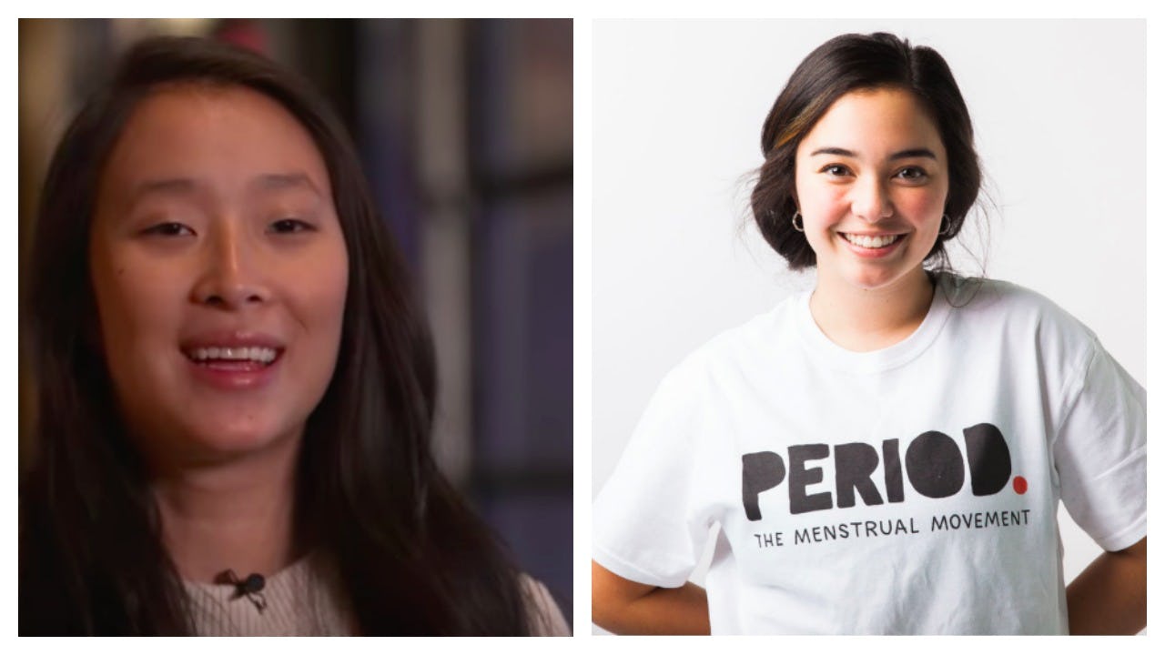 Okamoto co-founded the non-profit PERIOD Inc. with high school classmate, Vincent Forand, after she talked with some homeless women about the struggle they face during their period each month. Without access the the necessary products, these women have had to use toilet paper, socks, and even cardboard as makeshift maxi pads.