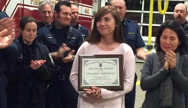 Charlotte may not think her feats are worthy of an award, but they’re absolutely extraordinary, and she should feel very proud. She saved her dad’s life and showed what an every day hero really looks like. Whatever public service she decides to pursue, her future certainly looks bright.