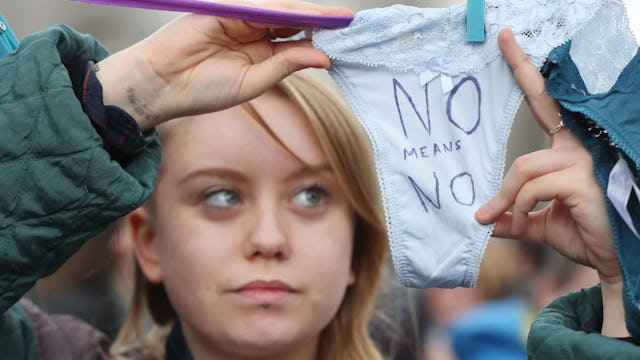 The image of the teen’s underwear has become the center of the protests, with women posting pictures of their own underthings to make points about clothing, consent, and “asking for it.” Politician Ruth Coppinger went as far as holding up her own pair of panties in Ireland’s House of Representatives while calling for reforms.