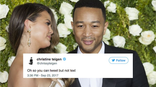 A little back story. Over the weekend, Teigen must have texted her husband, musician John Legend. He apparently did not text her back in a sufficiently acceptable window but did seem to have time to tweet out to his over ten million followers, which blew the whole “I didn’t check my phone” excuse right out of the water: