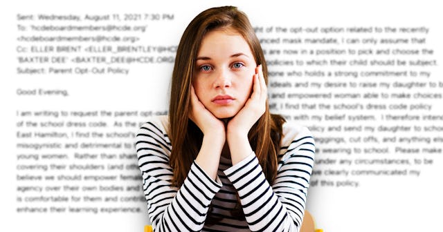 After the state’s Hamilton County School District (in the southeastern part of TN) announced that masks will be mandatory for students and staff unless they complete an opt-out form — now a statewide policy enacted by Republican Governor Bill Lee — Wendy (whose last name has been withheld out of privacy concerns for her family) emailed the school board of East Hamilton High School, where her daughter is starting her senior year, highlighting the hypocrisy of making mask mandates optional while the school’s dress code is not.