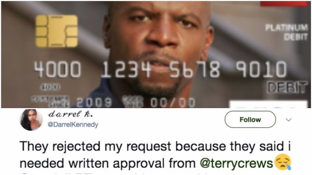 If you haven’t heard of Terry Crews, you might want to do a little reading — the guy is basically amazing. He recently shared his story of being sexually assaulted by a powerful Hollywood figure in an effort to support women in the wake of the Weinstein accusations. And now, he’s being just plain awesome to Darrel Kennedy, a Twitter user trying to convince her bank to let her put the Brooklyn Nine-Nine star’s photo on her debit card.