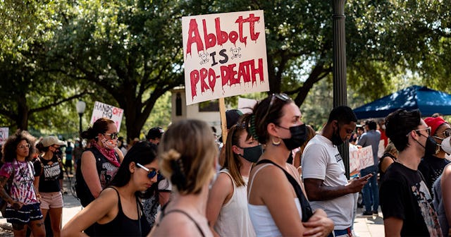 One Twitter user posted about Texas’ legal turmoil: “Guys, it’s fine. Given the current understanding of what a, “right to choose” means in Texas, we should soon be able to report anyone who puts someone else’s life at risk [by exposing them to COVID]. I’m sure we can expect a reporting system & $10K fines very soon.”