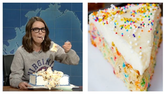 She makes it look so damn fun, and I am excited this has become a trend so we can all partake and feel no shame. Fey says, “…find a local business you support. Maybe a Jewish-run bakery or an African-American-run…bakery. Order a cake with the American flag on…and just eat it.”