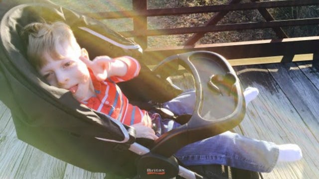 Winter isn’t easy for a kid like my son who’s in a wheelchair 90 percent of the time. The colder wind ushers in a trapped feeling when we can’t go outside as much as we’d like. He can’t run to get his blood pumping on those walks we take. I march, briskly, like a governess with my charge, rolling him along. He loves it though, pointing to people and rocks and orange construction cones placed at random on the park path.