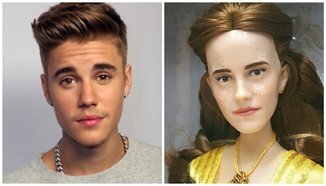 Emma Watson is gorgeous. Disney is great at making dolls. Not really sure how this happened. It’s like they took her face a little too literally, and apparently the literal version of Emma Watson’s face = Justin Bieber. Never even noticed they looked alike until now. Maybe they don’t?