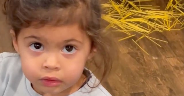 The video shows doe-eyed angel Tiana lying her sweet baby face off as Johnson gently tries to get the truth out of her. “Baby Tia putting the heat on the ‘Paghetti fairy’ as she slowly lets all the spaghetti fall on the floor saying ‘she did it again?’ is some of the funniest shit I’ve experienced in a long time,” he writes.