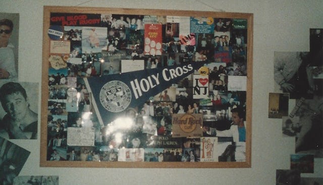 It was August of ’83, and I was off to college. I begged my mother to let me bring that oversized bulletin board with us. It obstructed my father’s view, but ninja-like, I slid it in the way-back regardless. It sat atop varied on-my-own belongings—milk crates for warm sweaters to brave New England winters, my down comforter (purple to match the Holy Cross logo) and a mauve bucket of toiletries. Like a stowaway in the backseat, I cradled my boombox and a Ziploc full of cassette tapes—Flashdance, Synchronicity and Thriller among them. I brimmed with anticipation that day, the first of many in my college journey.