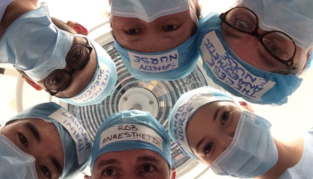 Dr. Hackett’s idea is catching on in hospitals everywhere, with people sharing their own photos to submit to the #TheatreCapChallenge.