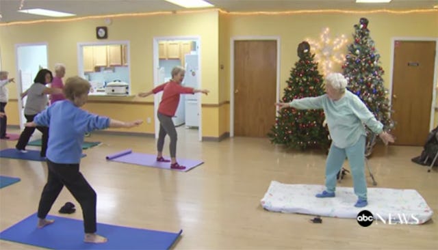 While most people would consider themselves lucky enough to live to be 100, and some seniors prefer to wave their canes and wax on about the “good ol’ days,” Hansen keeps young and spry with a little Downward Dog and Sun Salutations. In fact, according to the Washington Post, studies suggest that yoga can help reduce heart rate and blood pressure, relieve anxiety and depression, and ease back pain.