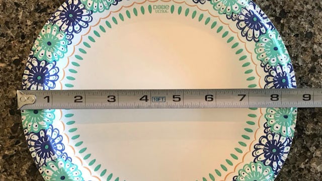 “22cm or 8.6 inches,” explains Fry, describing the dimensions of the paper plate she shared in the pic. “That is the exact diameter of a paper plate, AKA the fine china in our house. It is also the average diameter of a placenta.”