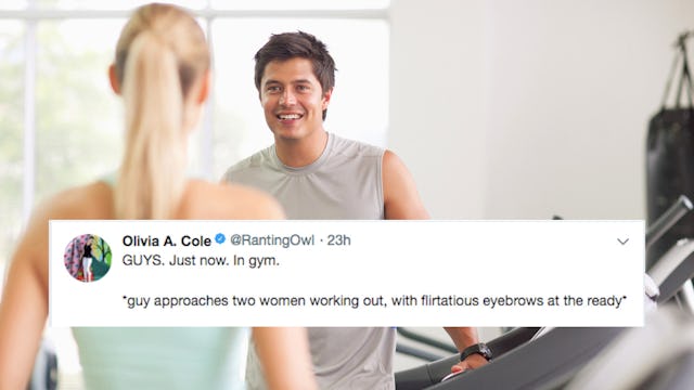 Cole recounted a conversation between two girls and a guy at the gym who was trying to chat them up — because we all know how much we love getting hit on at the gym, right? Right. You’re sweaty, out of breath, focused on your fitness — clearly the perfect time for a dude to get all up in your zone.