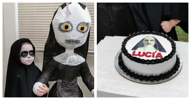 Most three-year-old birthday parties have innocent themes involving princesses and fluffy animals, perhaps with their favorite cartoon character topping their cake. But not Lucia Trujillo Brown. Lucia’s birthday party took things to a whole other level when she decided her party would have The Nun theme — and yes, I mean the horror flick.