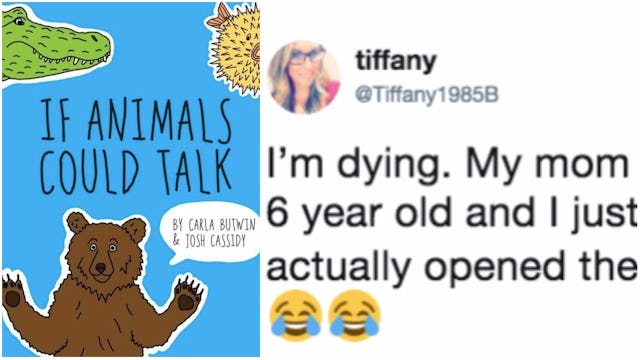 The book, If Animals Could Talk by Carla Butwin, is a funny picture book full of adult humor and witticisms no just-learning-to-read-6-year-old would understand. Even Amazon advertises it as “definitely not for all ages.” But Grandma saw an illustrated book with animals on the cover and went for it. And, in her defense, who wouldn’t make the same assumption? Grandma apparently wasn’t the only one under the wrong impression — Tiffany tweeted the book itself was on display in the children’s section at her local Barnes & Noble!