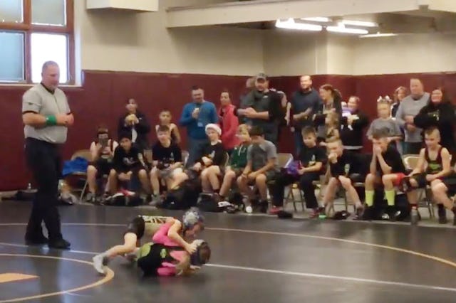 Need an extra shot of adorable this morning? A toddler mistook his sister’s wrestling match for a real-life fight, and ran onto the mat to save the day.