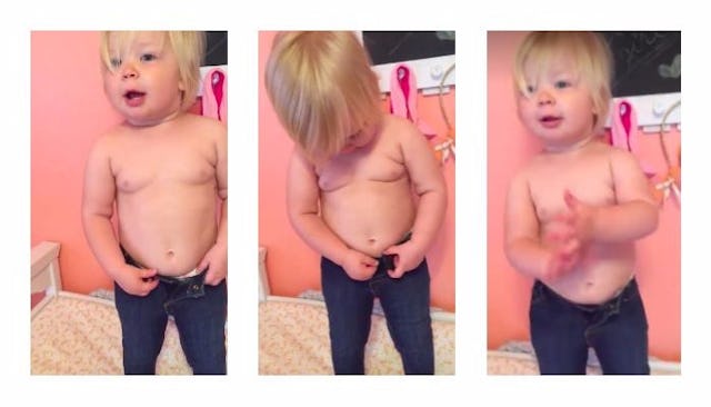 This Toddler Struggling To Get Into Her Skinny Jeans Is All Of Us