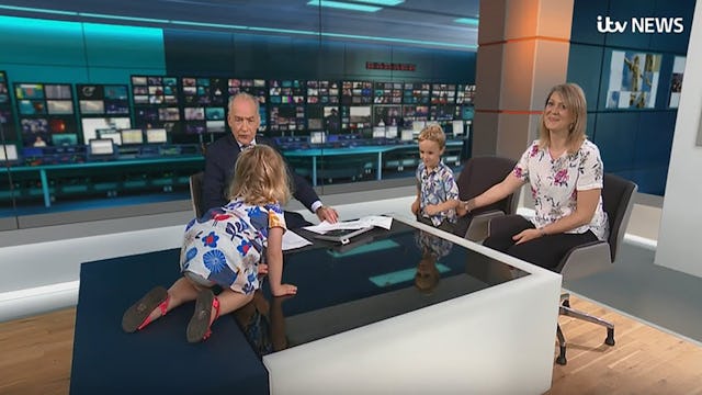 Alastair Stewart, an English journalist and newscaster for ITN, hosted mom Lucy Wronka on their Wednesday lunchtime show to talk about milk allergies. Wronka brought along her two children, George and Iris, either because ITV requested them to be on with her or because she is a gambling woman.