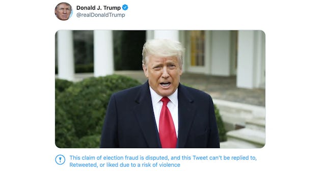 Twitter, for its part, put what looks to be a new warning on his video shortly after it was posted, making it unsharable, unlikeable, and for anyone to comment on it.