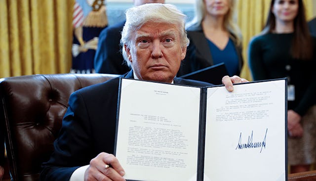 He’s been president for less than a week, and already Trump has managed to sign orders that will hurt women, people who want to buy homes, people who want to keep their health insurance, federal workers, and now, the environment. Next? An executive order to slap all our moms in the face because no, nothing is sacred.
