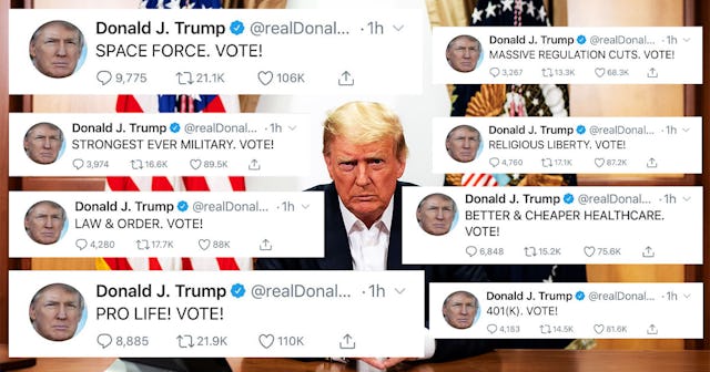 Early Monday morning, the tweets were flying from President Donald Trump’s Twitter account in a flurry, despite the fact that he’s hospitalized in Walter Reed Medical Center with COVID-19. Trump hasn’t been very active on his favorite social media platform during the last few days while undergoing extensive treatment for the virus. His latest Twitter storm began around 7 a.m. EST this morning, and they did not stop. They also did not make sense, for the most part.