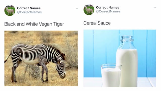 Twitter is a sucker for simplicity, absurdity, and animals, and Correct Names delivers all three in droves. The account has amassed almost 40,000 followers in a short period of time because of gems like this: