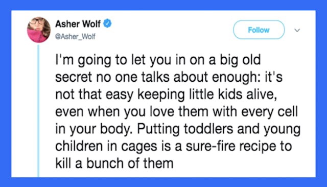 Twitter user Asher Wolf has some important, heartbreaking words on what these “tender age” shelters really mean.