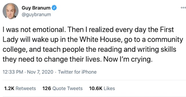 It’s a new start for a country that spent four terrible years wondering daily if things could, in fact, get worse. We’re about to welcome empathy, love, kindness, intelligence, expertise, and rescue dogs back into the White House. It’s a good day, America. A very good day.