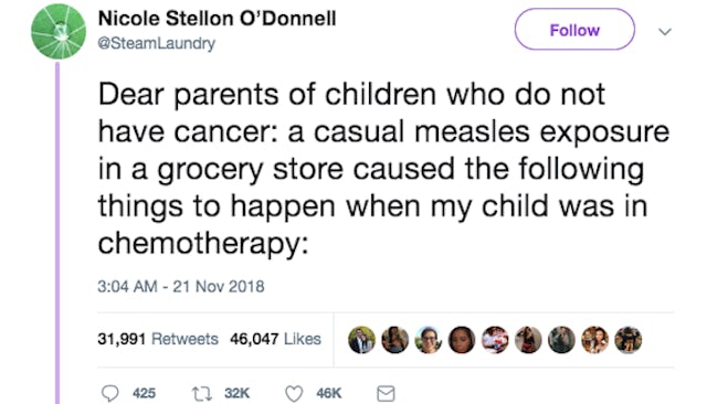 A heartbreaking Twitter thread shows what happens to immune-compromised kids when parents don’t vaccinate