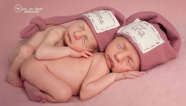 Photographer Juliet Cannici and her wife Nikki are the proud parents of two gorgeous sets of twins: Nico and Siena, nearly three, and Gia and Gemma, just over two weeks old. Cannici, owner of West on Jade Photography, took photos of the new baby girls a few days ago and Nico and Siena got in on the action for one adorable shot.