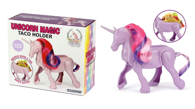 The holiday shopping season is in full swing and if you’re that obnoxious person who can’t stop talking about how they’re already done shopping, please stop doing that. For those of you that still need gift ideas, we’ve got you covered. Behold: the unicorn taco holder.