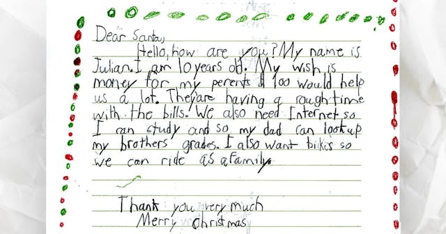 To get started, you just have to sign up with a verified email address to create your own account through the program. You can choose a letter from an individual child, or one from an entire family in 15 cities across the U.S. The full names of the letter-writers are kept private, but the USPS has their information to ensure your gift is placed in the right hands.