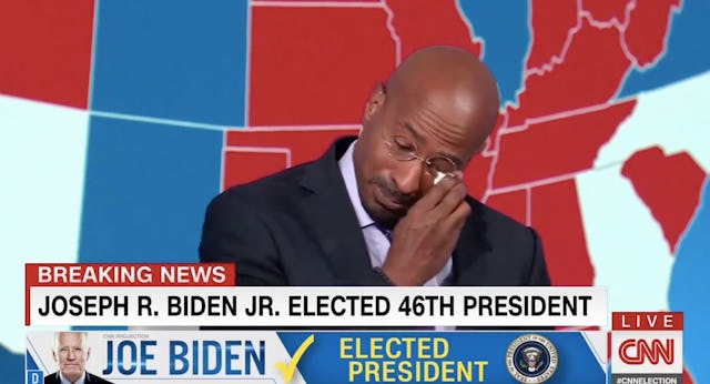 The second it was annonuced that Joe Biden had won the presidency, the U.S. erupted in celebration. But amid the popped champagne bottles and the triumphant and peaceful marches though the streets, CNN’s Van Jones’ took a beat, on air, to truly memorialize what it means that Joe Biden and Kamala Harris are set to lead this country. Speaking directly to the public and coming to tears at one point, Van Jones said, “now we can breathe.”