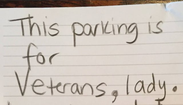 You can’t judge a book by its cover, but that’s never stopped people from trying. That’s why one female veteran took it upon herself to publicly school a rude stranger who left a “misogynistic” note on her car after she parked in a veterans-only parking space.