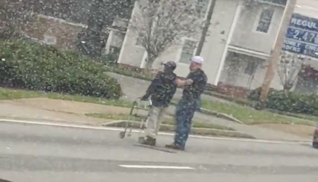 E’Ondria Weems was driving in Griffin, Georgia last weekend when she saw a man with a walker trying to cross a busy road in the rain. That’s when a man in front of her jumped out of his truck to help, using the truck to block traffic in one direction. Weems was so overwhelmed she started taking video with her phone and shared the sweet moment on Facebook.