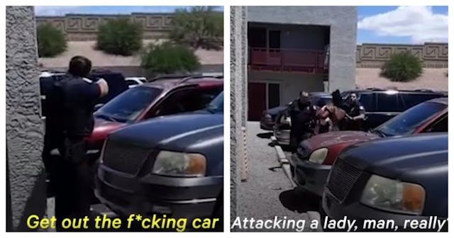 Another overzealous officer is seen pointing a gun at the car, with the children still inside, while another cop yells, “You’re gonna f*cking get shot!” They also accost Harper, who is five months pregnant, as she eventually exits the vehicle and holds her youngest daughter, who is only a year old, in her arms. He can be seen trying to snatch the child from her, while screaming at her to put the baby down on the pavement.