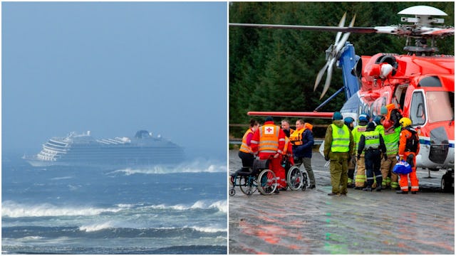 Four helicopters were involved in the operations to remove passengers. “Our first priority was for the safety and well-being of our passengers and our crew, and in close cooperation with the Norwegian Coast Guard, the captain decided to evacuate all guests from the vessel by helicopter,” a Viking Cruise spokesman said in a statement.