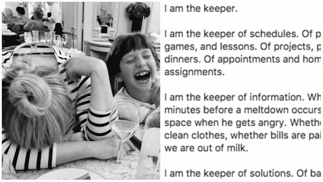 Mom’s post, “I Am The Keeper” perfectly nails the mental load of motherhood