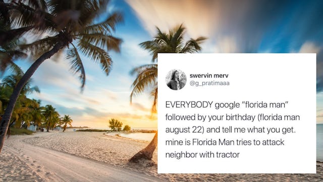 As so many things do these days, the viral “Florida Man Google Challenge” all started with a tweet. A 21-year-old from Dallas who goes by the handle “swervin merv” posted the tweet below, and sent everyone googling.